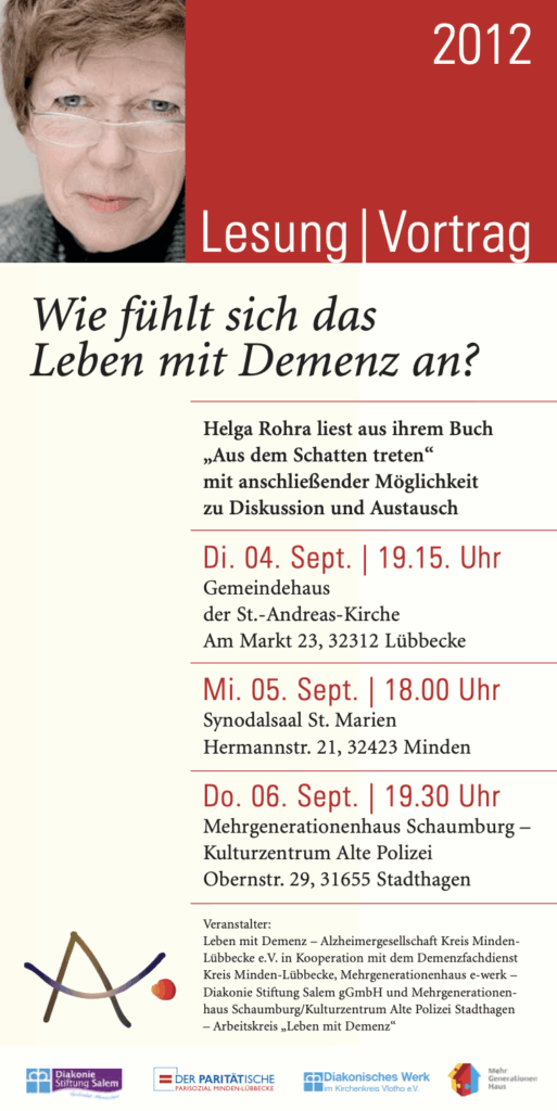 Helga Rohra liest aus ihrem Buch „Aus dem Schatten treten“ mit anschließender Möglichkeit zu Diskussion und Austausch.