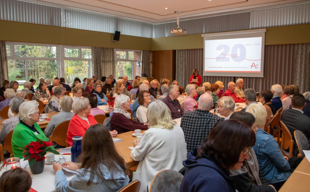 Minden/Hille. Seit 20 Jahren setzt sich der Verein Leben mit Demenz mit vielfältigen Angeboten, Gruppen und Aktivitäten für Menschen mit Demenz und ihre Angehörigen ein und trägt dazu bei, das Thema Demenz in der Gesellschaft sichtbar zu machen. Am 28. November 2025 wurde dieses besondere Jubiläum im festlich geschmückten Bürgerhaus in Rothenuffeln gefeiert.